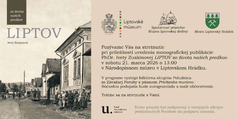 Spoločnosť priateľov Múzea liptovskej dediny začiatkom roku 2026 vydala s finančnou podporou FPU Fondu pre podporu umenia publikáciu LIPTOV zo života našich predkov.